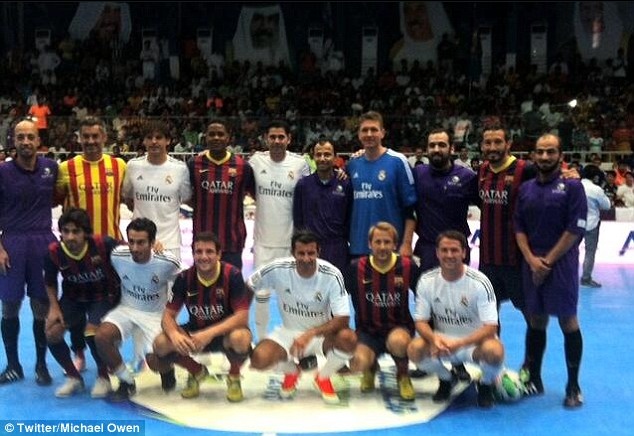 Ex-Stars von Real Madrid und Barca bei einem Futsalspiel in Kuwait. Michael Owen twitterte das Bild nach dem Spiel