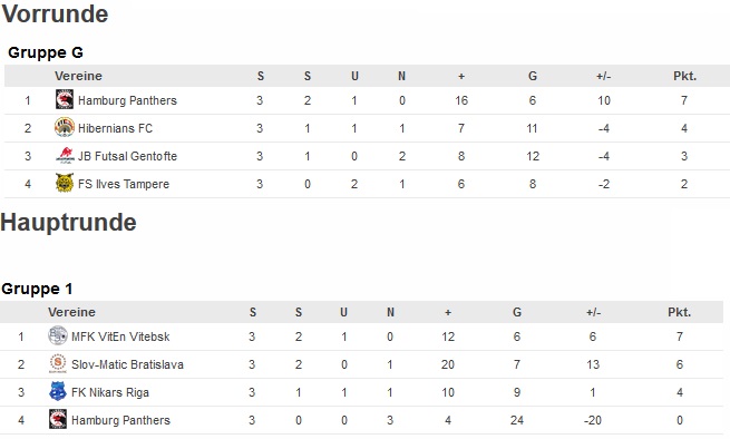 Auch ein deutsches Team hat am UEFA Futsal Pokal teilgenommen. Dieses Jahr durften sich erneut die Hamburg Panthers mit der internationalen Konkurrenz messen lassen, die als Sieger des DFB Futsal Cup gleichzeitig als deutscher Meister gelten. Die Panthers spielten damit zum zweiten Mal in Folge international und wussten dabei auch mit guten Ergebnisse zu überzeugen. Zum ersten Mal konten die Panthers als ein deutsches Team die Vorrunde überstehen und ihr Ticket für die Hauptrunde ziehen. Leider war die Hauptrunde die letzte Station der Panthers. Die erfreulichen Ergebnissen aus der Vorrunde wurden von den deutlichen Ergebnissen der Hauptrunde förmlich überschattet. Hier wurde der Abstand zur profesionellen Futsalelite deutlich.