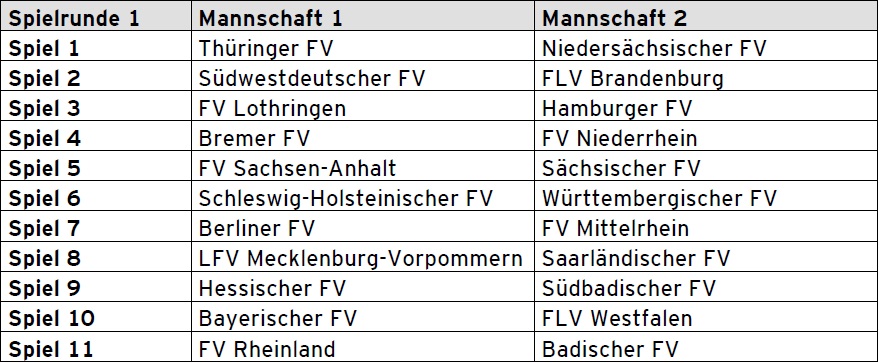 Auslosung der 1.Runde beim Landesauswahlturnier (Quelle: DFB Ausschreibung Futsal Landesauswahlturnier)