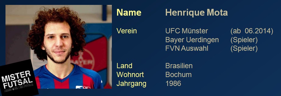 MF. Auch ohne Millionenablöse durfte der UFC Münster den wohl größten Transfercoup 2014 feiern. Hernrique Mota wechselte nach vielen erfolgreichen Jahren bei Bayer Uerdingen zum UFC. Grund genug, den gebürtigen Brasilianer, der einer der größten Antreiber der Futsals in Deutschland ist, zum Interview zu bitten. Die Gründe zum Wechsel und viele weitere interessante Aussagen findet ihr hier, bei „Mister Futsal fragt … Henrique Mota“!