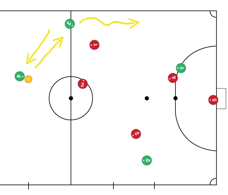 Spielsystem der Sachsen: Ein asymmetrisches 2-2, bei dem der lange Ball oder der Ala zum entscheidenden 1gg1 gesucht wird.