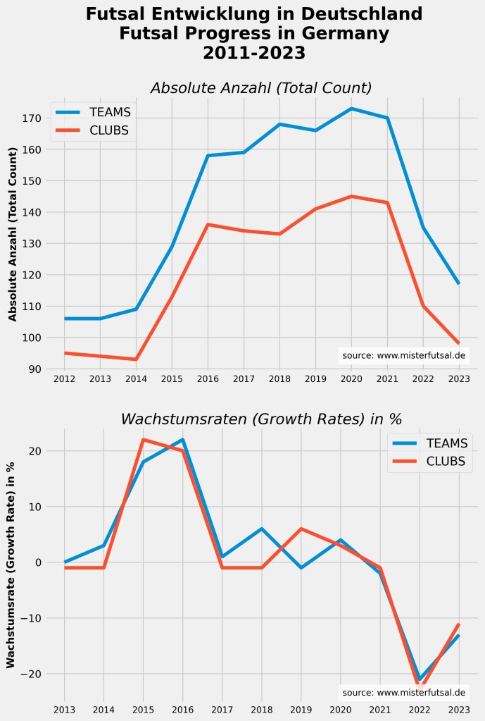 auch 2023 präsentieren wir wieder den jährlichen Futsal-Entwicklungsbericht für das Jahr 2023. Wir möchten in diesem Bericht einen Überblick über die Entwicklung von Futsal in Deutschland geben und auf positive als auch schwächere Entwicklungen eingehen. Das Zahlenwerk haben wir bereits in unserer Podcast-Folge 168 ausführlich vorgestellt (https://open.spotify.com/episode/3oHxcXQkAVjHCboESRZUAy)